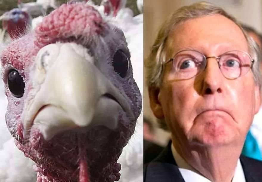 During a Zoom call with his mother earlier today, Senate Majority Leader Mitch McConnell explains that he is unable to be home for Thanksgiving tomorrow because he has a standing weekly appointment to get stuffed by Donald Trump.