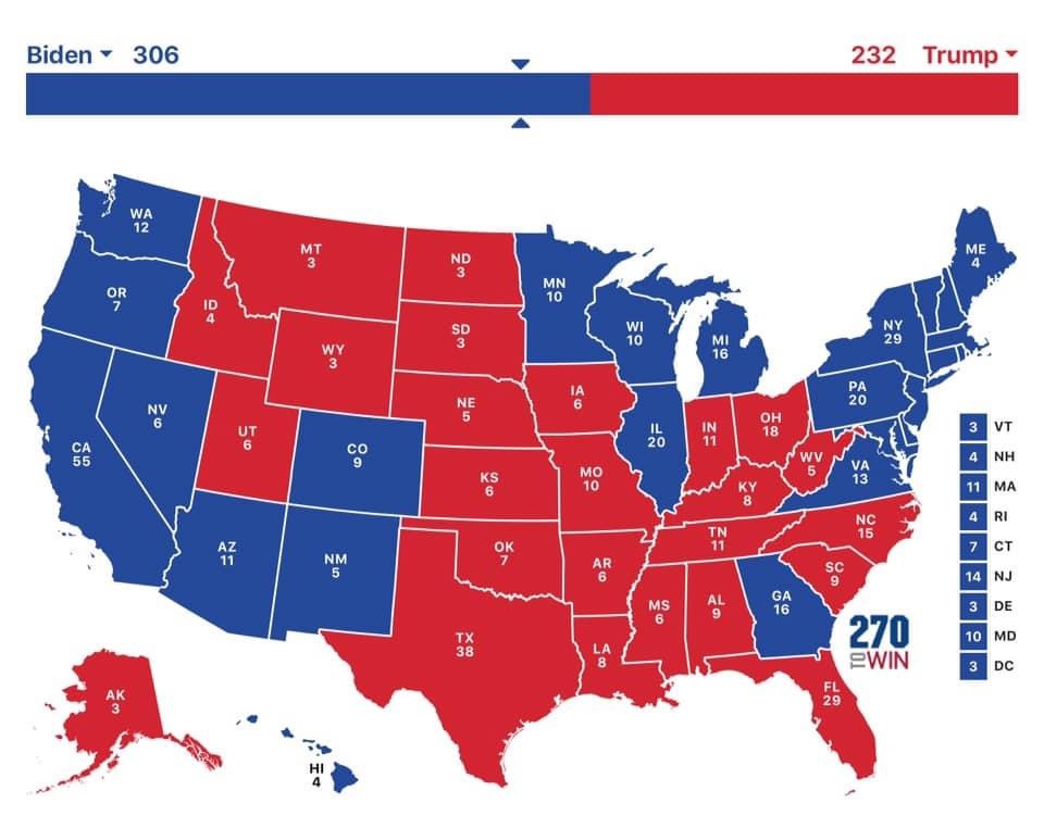 The final electoral vote allotment is Biden 306 and Trump 232.